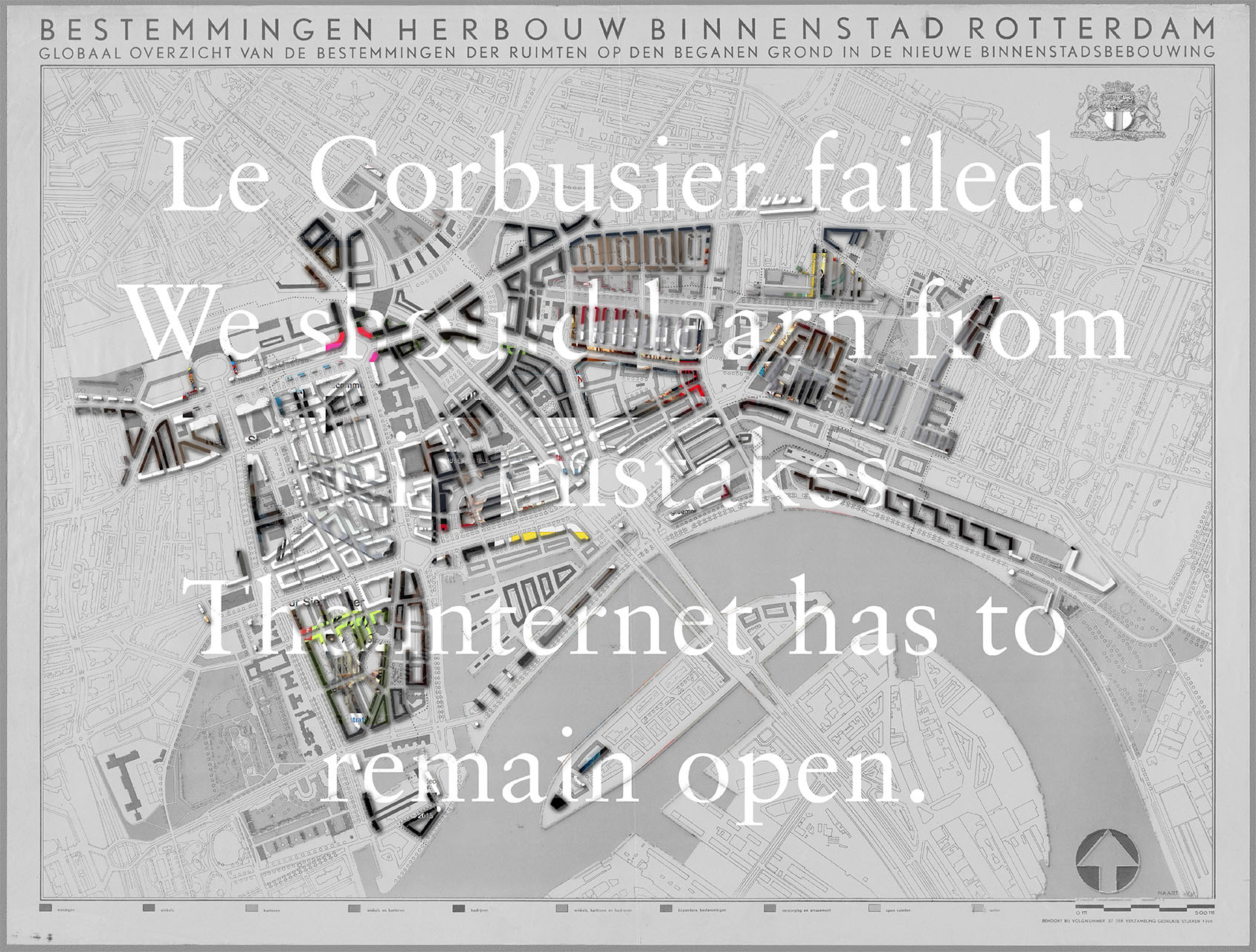 Cyberspace, originally conceived of as an autonomous Utopia parallel to reality, is increasingly being infiltrated by the rules of modern society. As in the physical world, public space has become public order. The airwaves we communicate on are the property of economic entities. Will it soon become illegal to construct buildings with bad network reception?