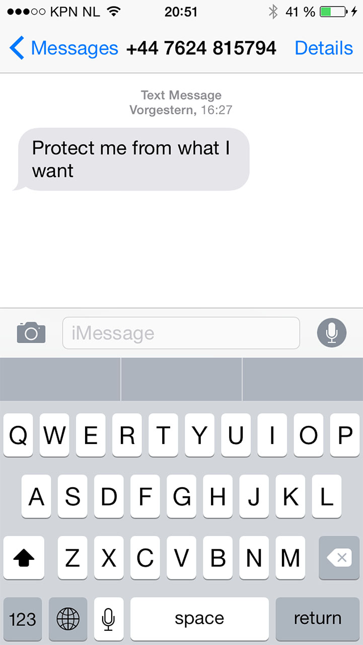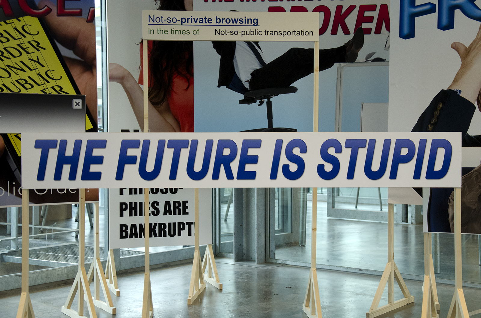 My project, titled The Future Is Stupid in reference to Holzer’s Survival Series from 1985, deals with the question of ownership and the relationship between private and public. Who does your phone really belong to?